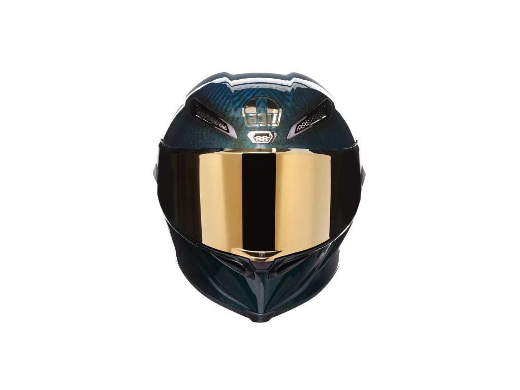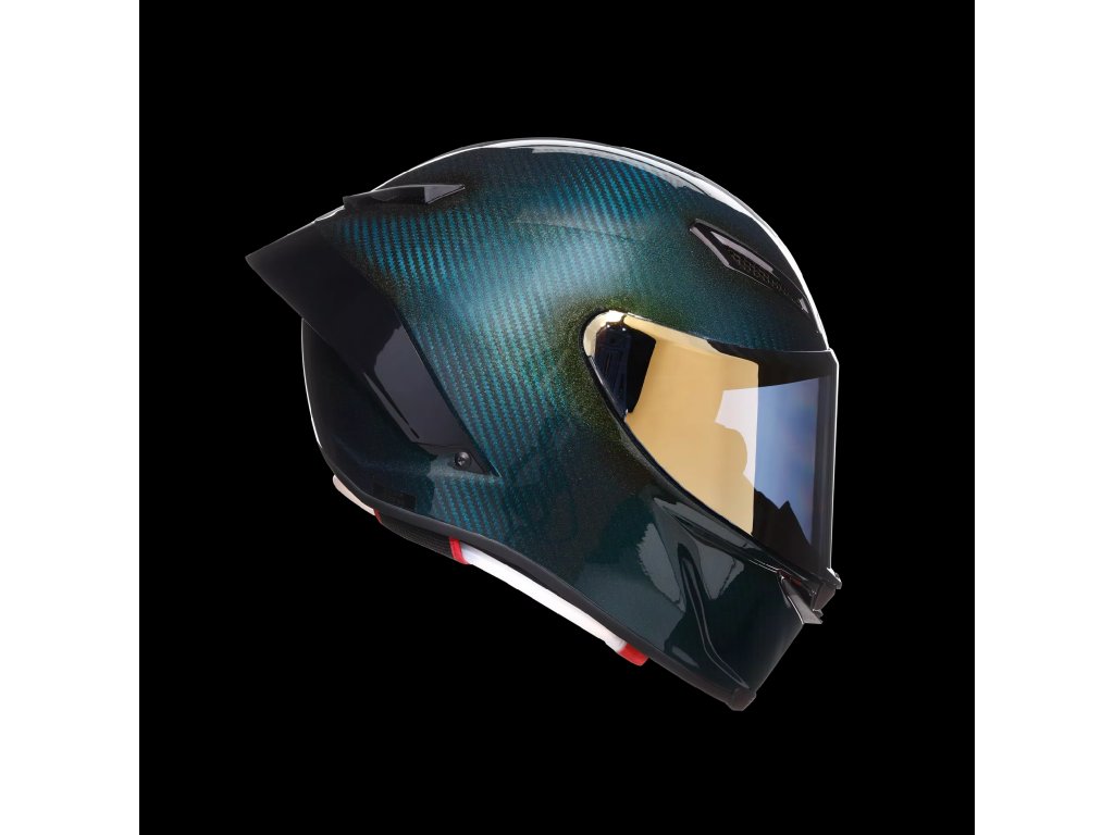 Každý detail je navrhnutý tak, aby zabezpečil maximálny výkon. Škrupina Extreme Carbon zo 100 % uhlíkových vlákien zaručuje mimoriadnu ľahkosť, vďaka čomu sa prilba nosí bez námahy. Jej tvary a kovové vetracie otvory sú navrhnuté vo veternom tuneli a testované športovcami AGV, aby sa zabezpečila najlepšia aerodynamická penetrácia a najväčšia stabilita pri vysokých rýchlostiach, a to aj vďaka inovatívnemu profilu zadného PRO Spoileru. Optické plexisklo Ultravision s hrúbkou 5 mm a optickou triedou 1 je neoddeliteľnou súčasťou ochrannej prilby, ktorá umožňuje panoramatický výhľad 190° a vertikálny výhľad 85°. To znamená, že jazdec vidí trať, súperov a prekážky jasnejšie ako ktokoľvek iný, a to aj v pretekárskej polohe.