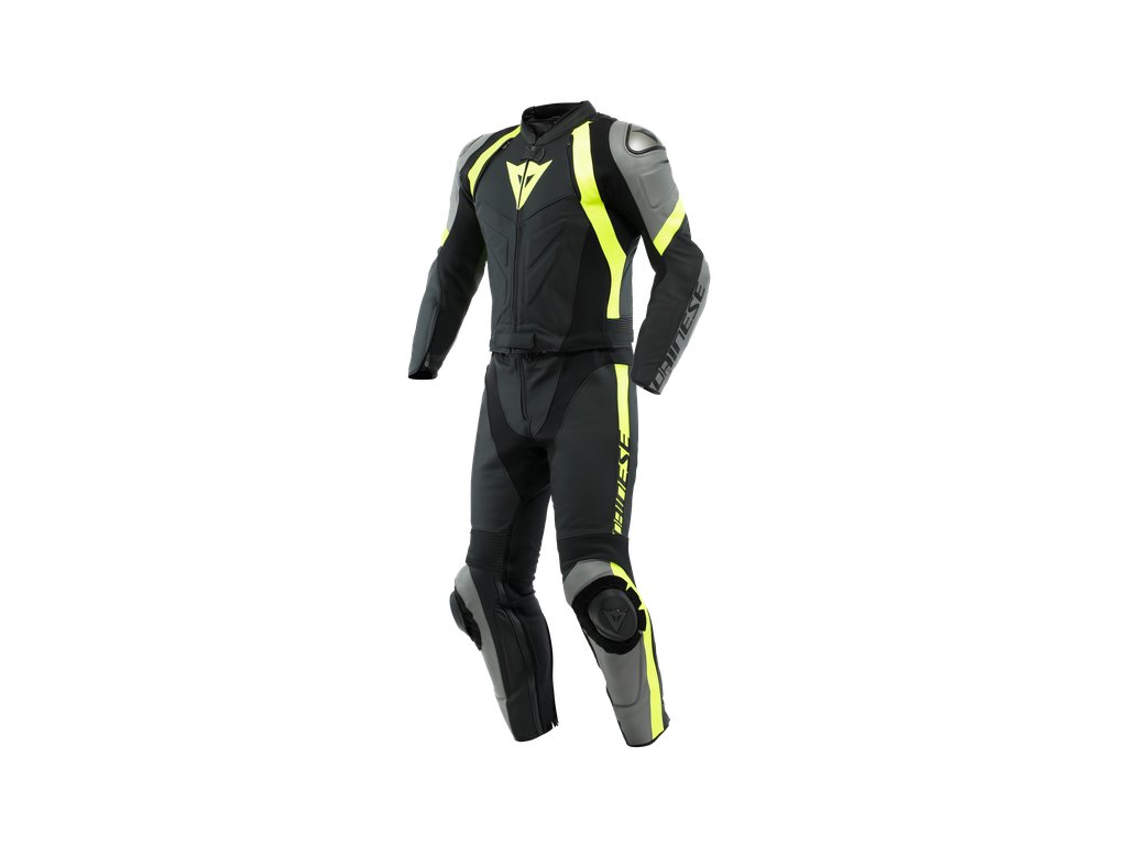 DAINESE AVRO 4 LEATHER 2PCS SUIT BLACK-MATT/CHARCOAL-GRAY/FLUO