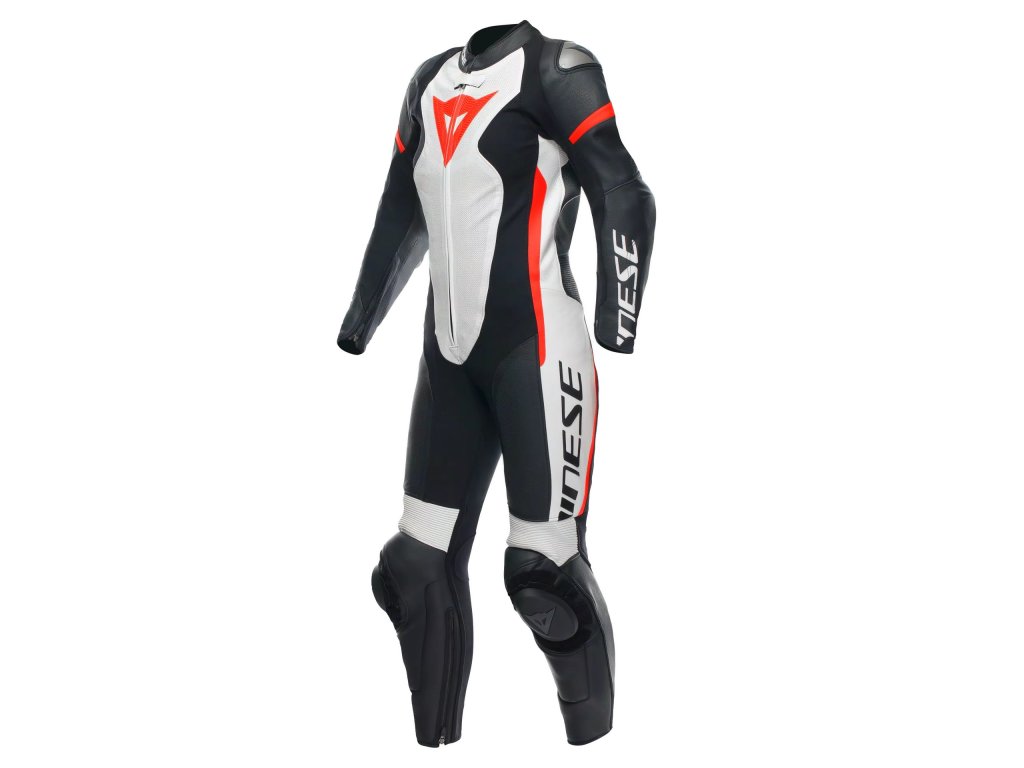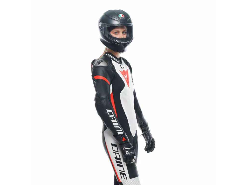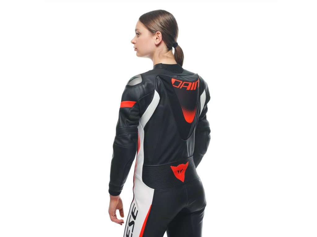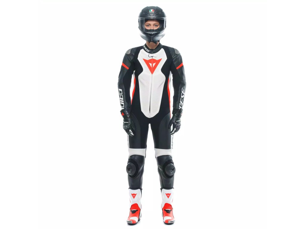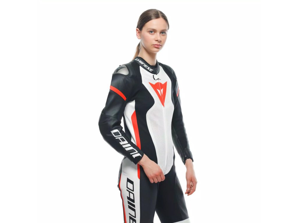 DAINESE GROBNIK LADY LEATHER 1PC SUIT PERF.BLACK/WHITE/RED-FLUO