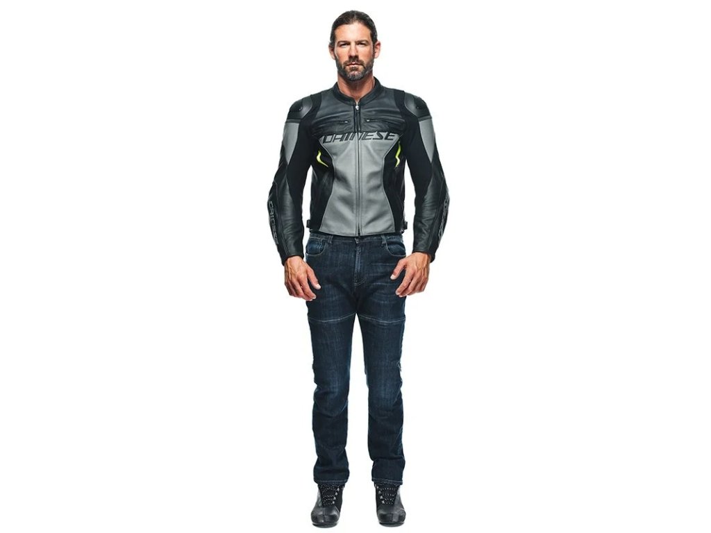 DAINESE RACING 4 LEATHER JACKET CHARCOAL-GRAY/BLACK