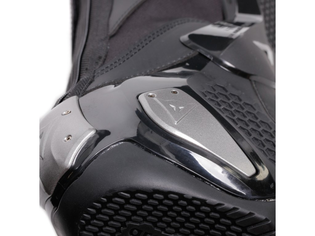 Elastická tkanina D-Stone™ zaisťuje maximálnu odolnosť a ľahké obúvanie. Horčíkové posúvače na špičke a päte sú vymeniteľné, čo umožňuje aj výmenu zipsov v prípade ich poškodenia. Najvyššiu úroveň bezpečnosti holení a päty zabezpečuje systém D-Axial, ktorý umožňuje lepšie tlmenie nárazov v prípade pádu a je vybavený aj vonkajším grafickým vzorom, ktorý pripomína model Pro-Amor 2. Inovatívne asymetrické podrážky Groundtrax® s odlíšenými oblasťami pre radenie a brzdenie sú navrhnuté tak, aby zaručovali priľnavosť a odolnosť voči teplu.