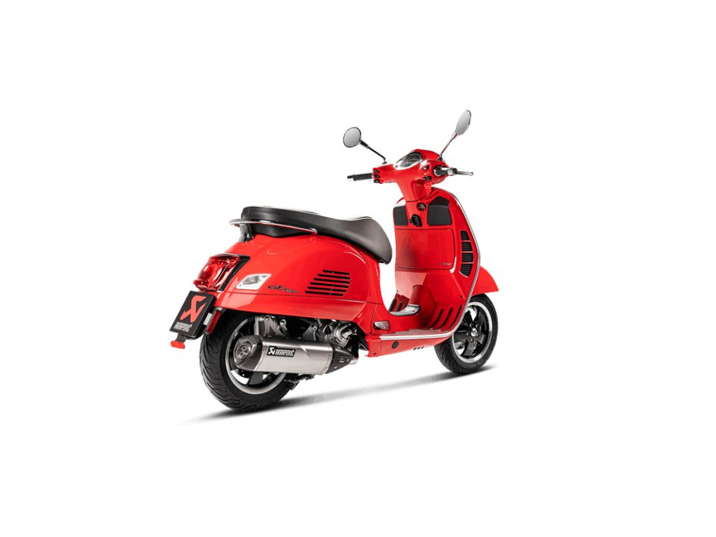 Výfukový systém Akrapovič nie je kompatibilný s kombináciou s originálnou chrómovou súpravou Vespa alebo zadnou bočnou ochranou.